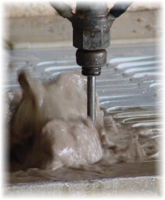 Waterjet applications for non-porous materials such as marble, granite, porcelain, metal, or glass, use abrasive grit (garnet sand) mixed with a fine stream of water at 60,000